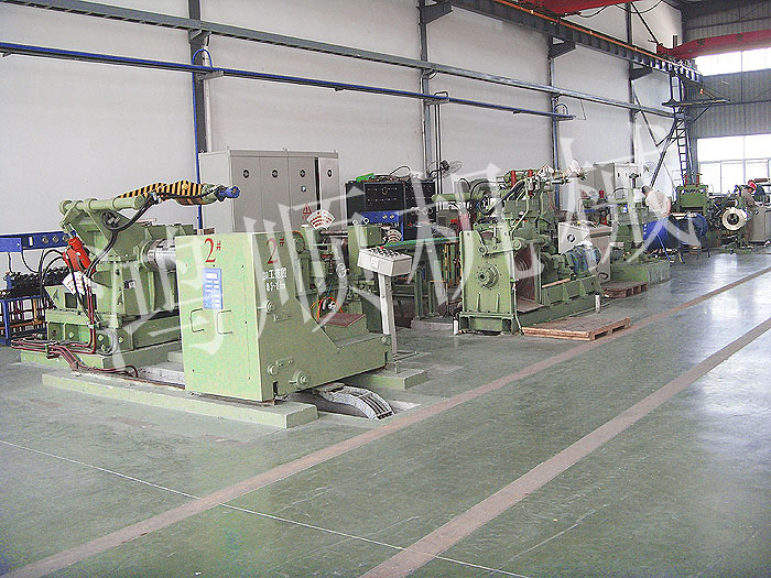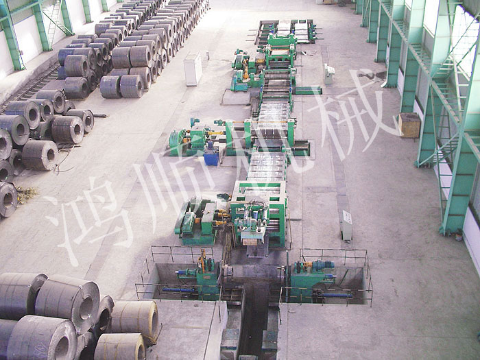 本機(jī)為多對(duì)刀片的圓盤(pán)剪切機(jī)組,由放料架、送料機(jī)、工作臺(tái)、圓盤(pán)剪切機(jī)、卷取機(jī)、電氣控制柜組合成一個(gè)機(jī)組。用于剪切中炭鋼、普炭鋼、有色金屬的20噸以下的大筒卷板料。按各種用度裁剪各種寬度的窄帶,作為焊管坯料冷軋帶鋼料及其它用途的扳帶,是目前使用進(jìn)口及國(guó)產(chǎn)大卷筒扳料必須配備的設(shè)備。